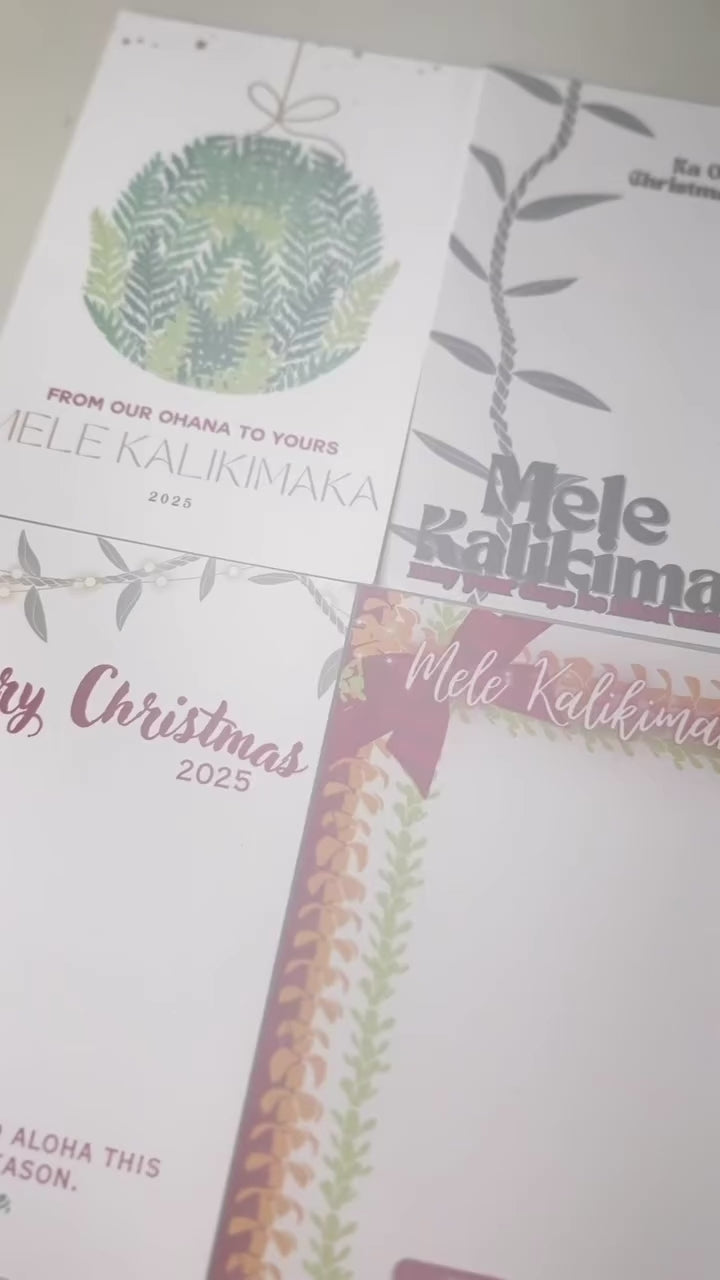 The only changes accepted to the card, is the wording of Merry Christmas or Mele Kalikimaka and your Family Name.